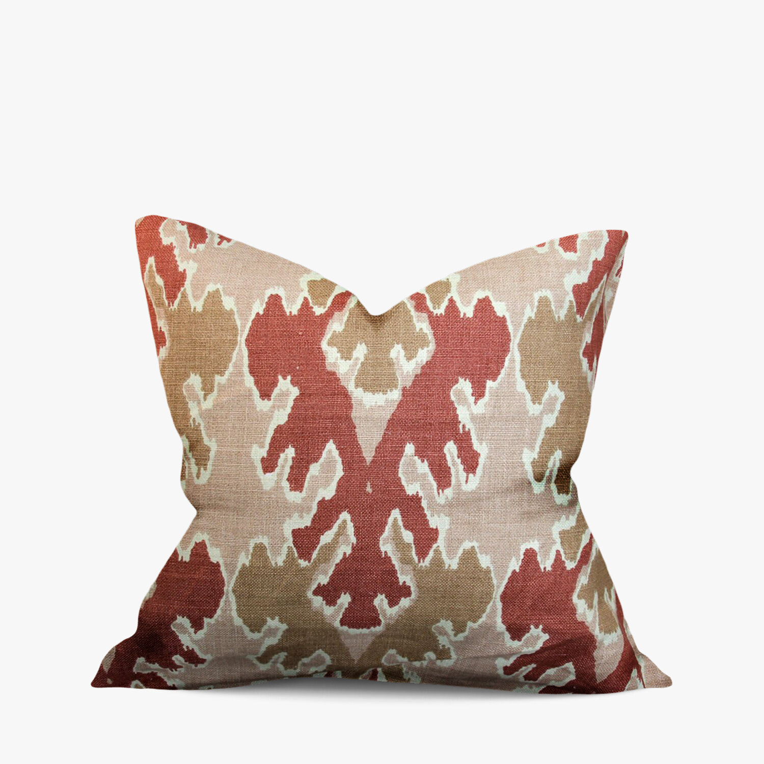 Both vibrant and elegant, this unique textile features a combination of warm colors with a textural, ikat design.