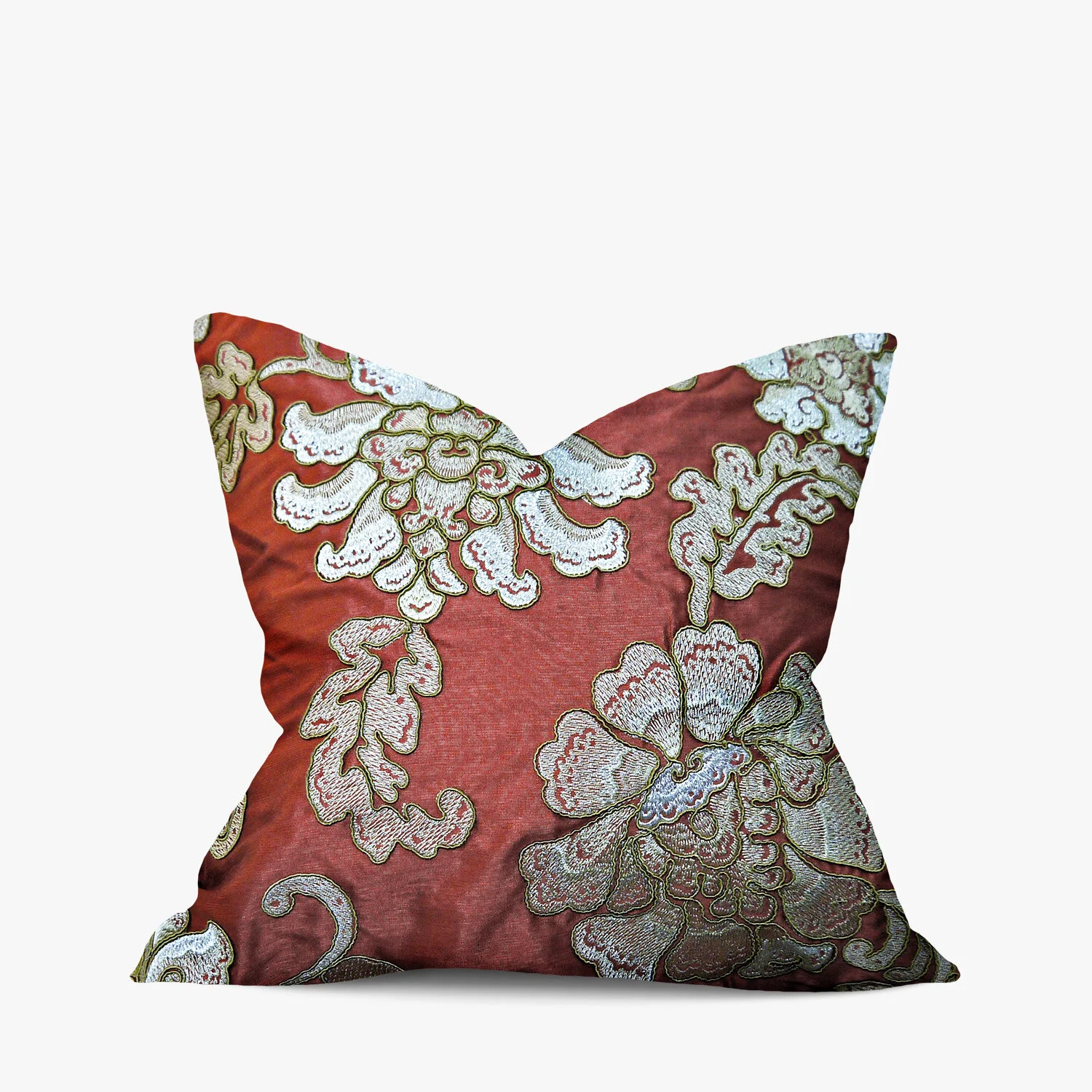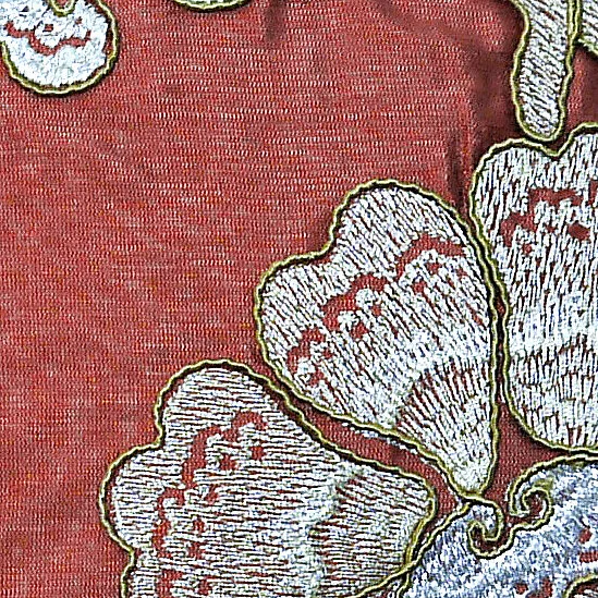 Luxe silk featuring an elaborate floral embroidery with metallic threads.